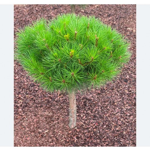 Карликовая форма черной сосны, которая во взрослом состоянии достигает диаметра 1 м. Обладает компактной плотной кроной и жесткой блестящей короткой хвоей. Ежегодный прирост составляет всего 3-5 см. Очень декоративна: сочетание блестящей зеленой хвои с белыми сильно осмоленными (в зимний период) почками заставляют садоводов высаживать этот хвойный вечнозеленый шарик в своих садах. Высота штамба 60 см.
