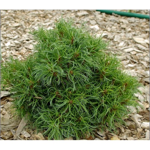 Необычная сосна плоско-сферической формы, очень плотная, с искривленной хвоей. Растет сравнительно быстро, прирост в год около 5 см. В 10 лет 50 см в высоту и ширину. Предпочитает умеренно влажную почву, отлично подходит для оформления малых садов. Плотная, кудрявая хвоя