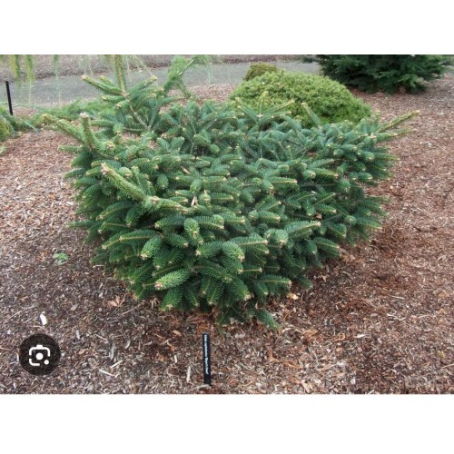 Густая низкорослая раскидистая форма греческой пихты. Растёт неравномерно, не образует центрального проводника. К 10-ти годам высота 70-80 см и ширина 100 см, затем вырастает до 200 см в высоту и ширину. Годовой прирост до 8 см. На молодых приростах хвоя светло-зелёная, на более старых тёмно-зелёная блестящая с двумя едва заметными светлыми полосками на нижней стороне. Побеги жёсткие, короткие. Шишек не образует. Место солнечное или полутенистое, защищённое от ветра. Почва плодородная, влажная, дренированная. Морозостойкость до -18ºС. В суровые зимы может подмерзать. Следует накрыть нетканым полотном, что предотвратит иссушение хвои ветром.