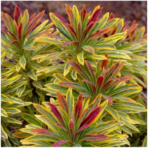 Молочай мартина "Ascot Rainbow" – эффектное вечнозеленое растение для оформления садовых участков. Кустарник декоративен благодаря своей пышной разноцветной листве. Каждый его листочек сочетает в себе несколько оттенков: в середине он зеленый, а по краям – желтый и красный.